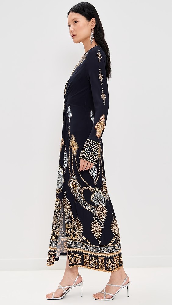 Long V Neck Twist Front Jersey Dress
