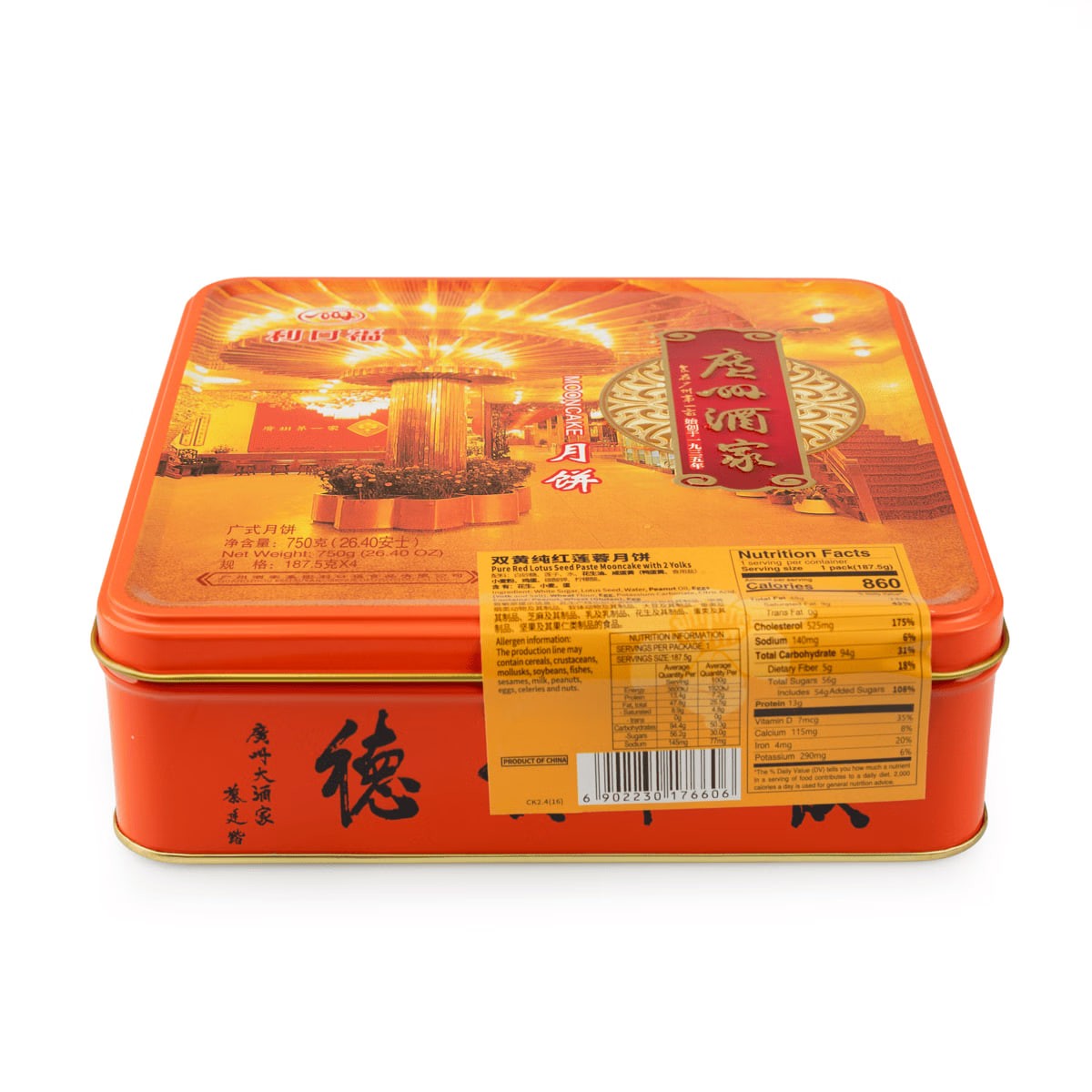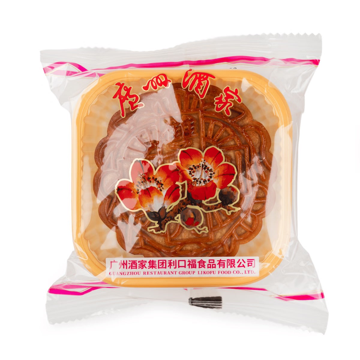 Mondkuchen aus roter Lotussamenpaste mit doppeltem Eigelb