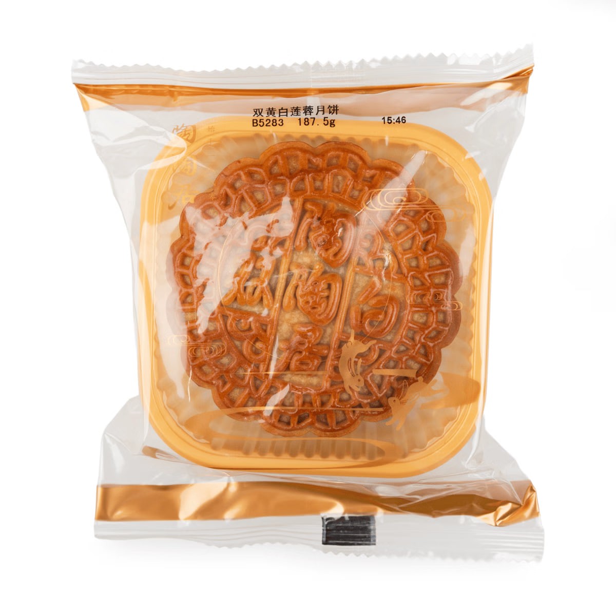 Mondkuchen aus weißer Lotussamenpaste mit doppeltem Eigelb