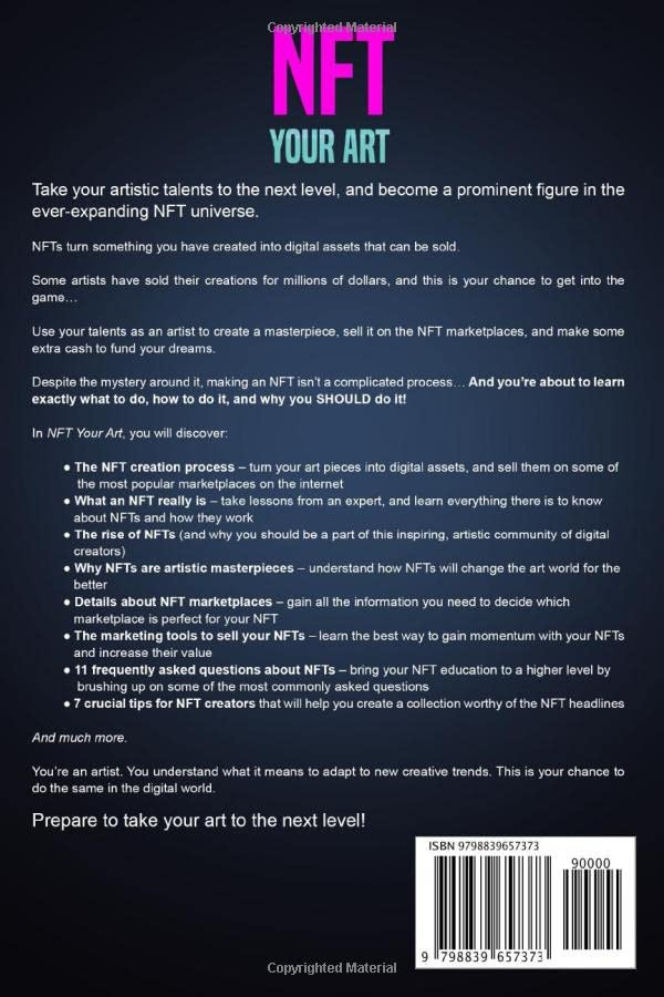 • The NFT creation process – turn your art pieces into digital assets, and sell them on some of the most popular marketplaces on the internet