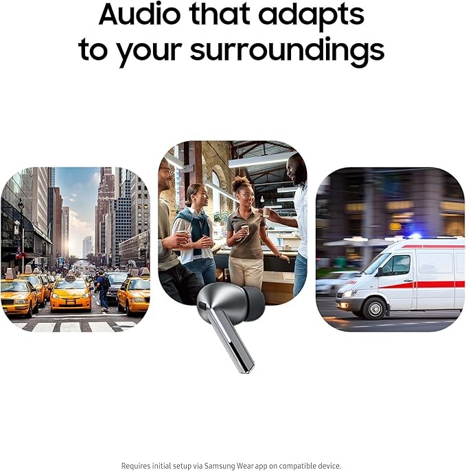 • AUDIO THAT ADAPTS TO YOUR SURROUNDINGS: Immerse yourself while staying alert to your surroundings thanks to Adaptive Active Noise Cancellation with Galaxy AI²; Your Buds will automatically adapt to help you hear what matters²