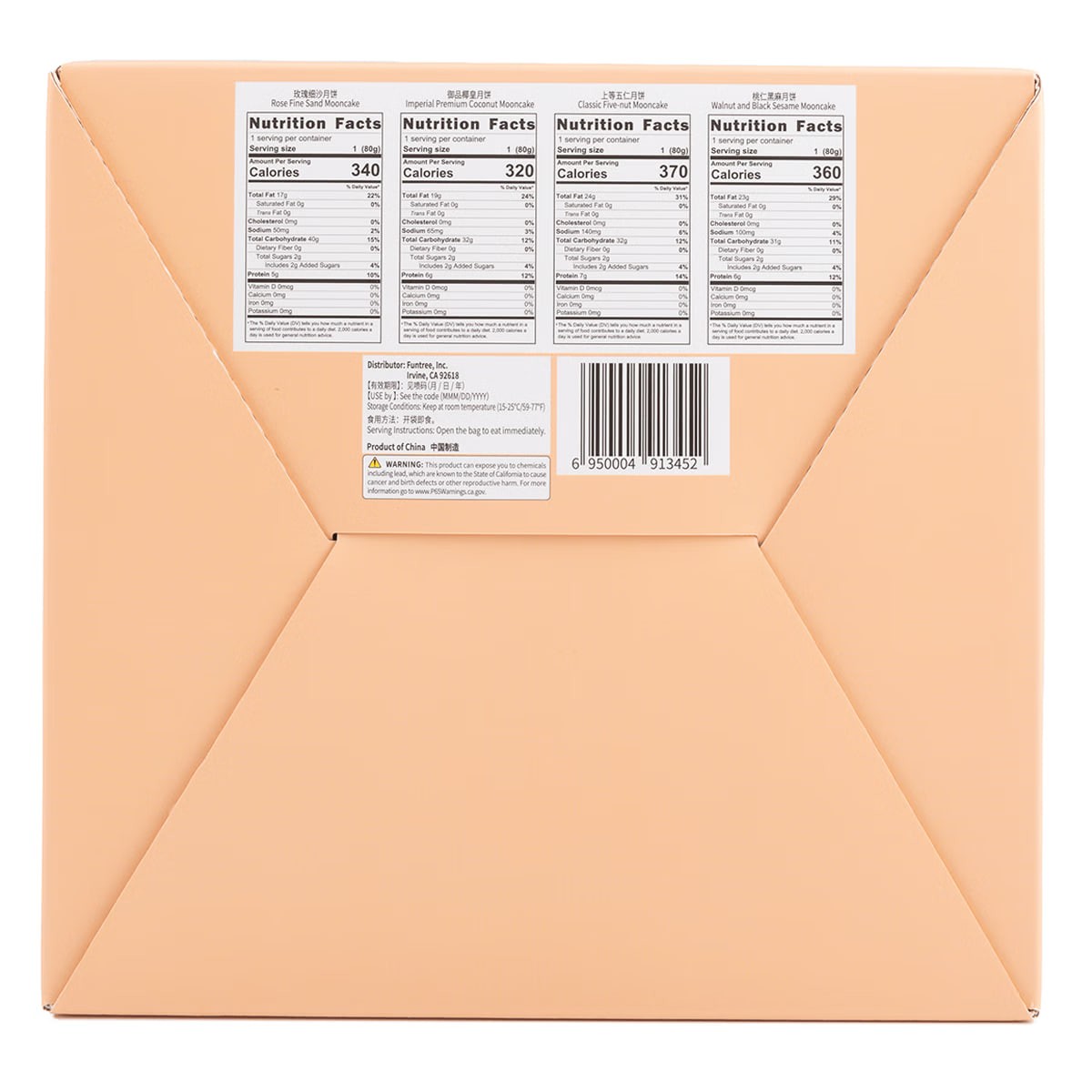 Mid-Autumn Festival Mooncakes - Classic Four Flavors - Suzhou-Style Mooncake Gift Box (4 pieces, 320g) - Black Sesame, Peach Kernel, and Five-Nut Flavor